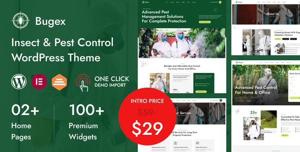 Bugex is a modern, clean, and performance-optimized WordPress theme built specifically for pest control companies, insect exterminators, termite treatment providers, mosquito control services, and sanitation businesses. Designed with a strong service-focused layout, Bugex helps you present your expertise professionally, build customer trust, and generate more leads.